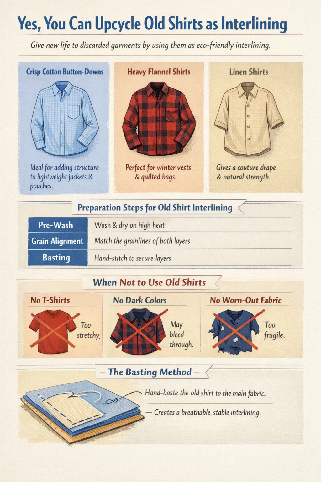 Die kurze Antwort ist klar ja . Unbenutzte oder alte Hemden können als ausgezeichnetes, umweltfreundliches und kostengünstiges Kleidungsstück dienen Einlage für verschiedene Nähprojekte. Die Verwendung ausrangierter Kleidungsstücke als Innenschicht ist eine altehrwürdige Tradition in der Schneiderei, die als „Making Do“ bezeichnet wird. Der Erfolg hängt jedoch ausschließlich davon ab, die Materialeigenschaften des Hemdes – wie Fasergehalt, Webart und Gewicht – auf die Anforderungen Ihres neuen Projekts abzustimmen. Wenn es richtig gemacht wird, sorgt ein altes Baumwoll- oder Flanellhemd für die nötige Form, Stabilität und Wärme, ohne dass synthetische, im Laden gekaufte Stabilisatoren erforderlich sind.